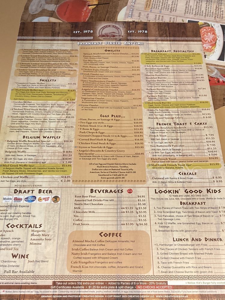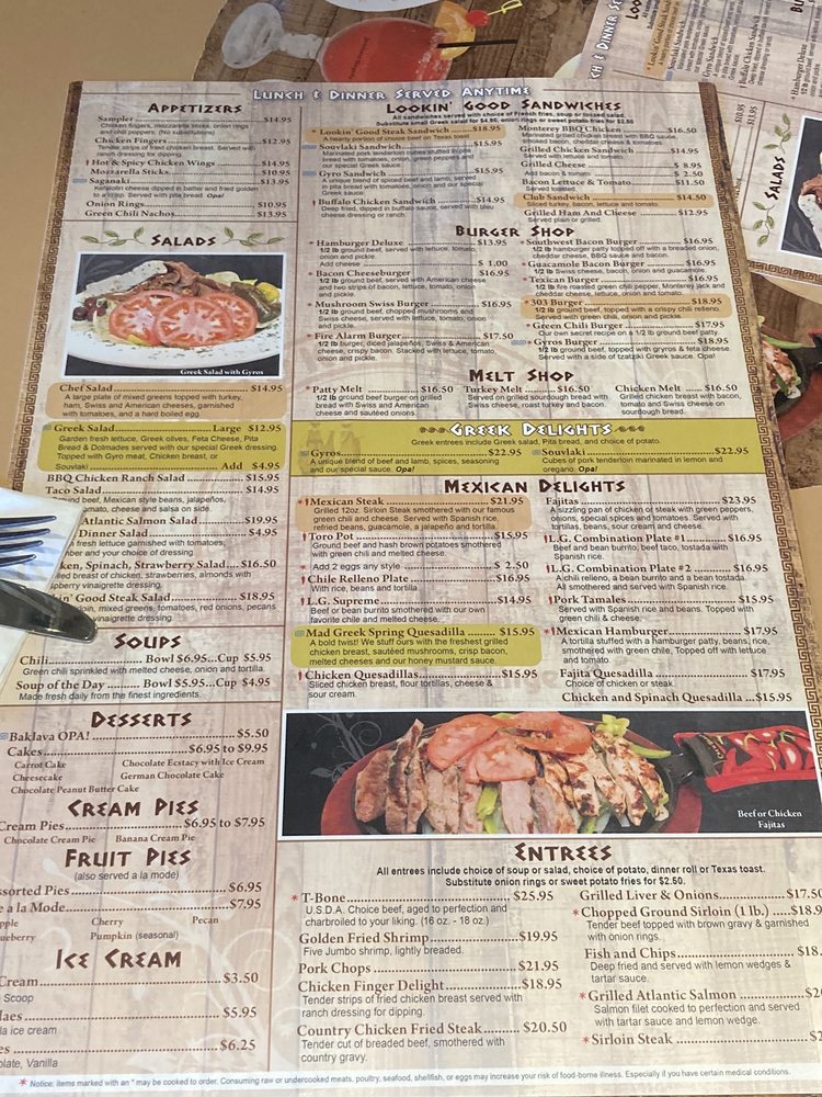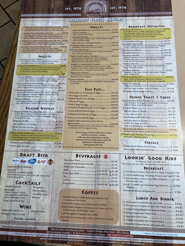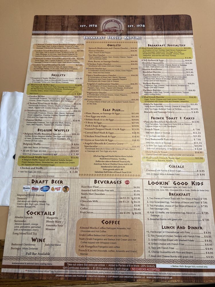 Lookin' Good Restaurant & Lounge is a quintessential breakfast, brunch, and dinner spot in Denver, CO that has been delighting customers for over 50 years. With a diverse menu featuring Mexican and Greek dishes, including tasty gyros and hearty breakfast skillets, this family-owned establishment offers delicious comfort food in generous portions. The friendly staff and comfortable seating create a welcoming atmosphere, making guests feel right at home. The retro diner decor with a Greek flair adds to the charm of the place. Highlights of the menu include the Gyro with sweet potato fries, Club sandwich with a Greek salad, and perfectly cooked steaks. Whether you're a regular or a first-time visitor, Lookin' Good Restaurant & Lounge promises a memorable dining experience that will keep you coming back for more.
